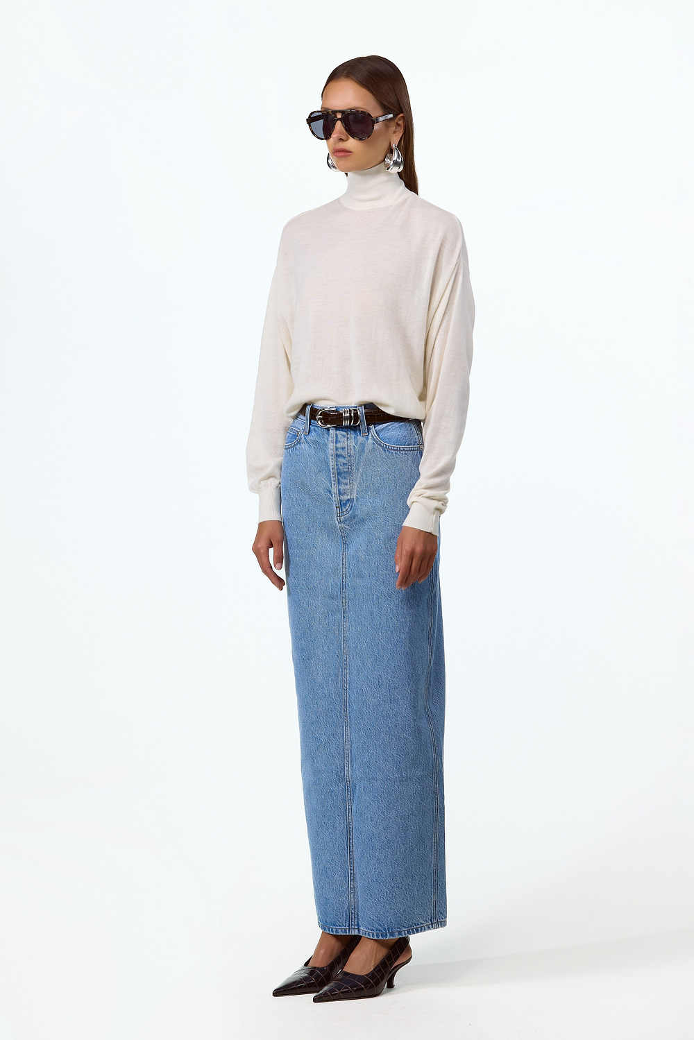 The Denim Pencil Maxi Skirt