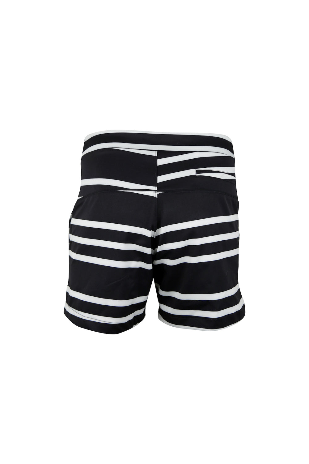 Classic swim trunks tailored for a refined, clean look. 5" inseams with elastic panels on the hips and drawstring on the front. Lightweight and lined with mesh. Back pocket has zip closure to safeguards your belonging while in the water.