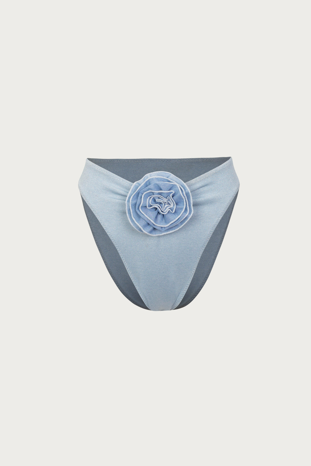 A modern take on a retro staple featuring a v waistline high-rise silhouette, high cut legs and just-right cheeky coverage adorned with our hand made three-dimensional rose bloom.