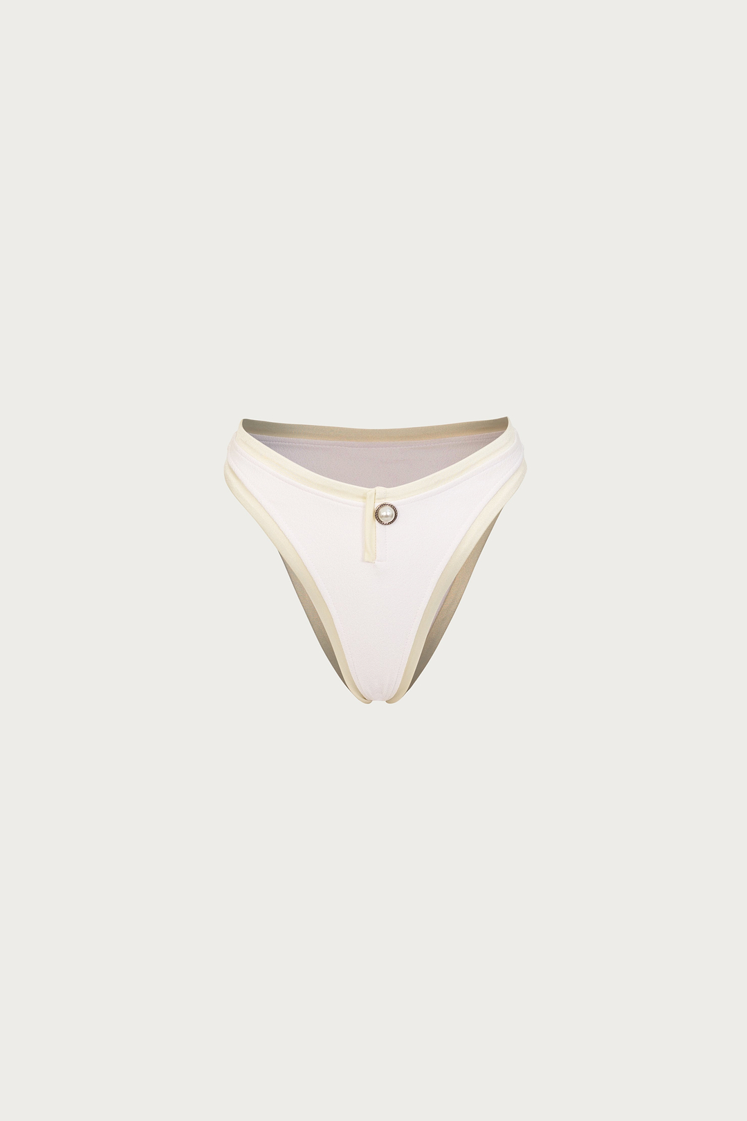 A modern take on vintage swimwear, The Grace Top is made from soft faux suede with shiny cream trim and pearl buttons down the front. The cap sleeves and rounded neckline offer a polished, feminine look with just the right amount of coverage. Designed to pair with The Grace Bottom or style as a cropped top beyond the beach.