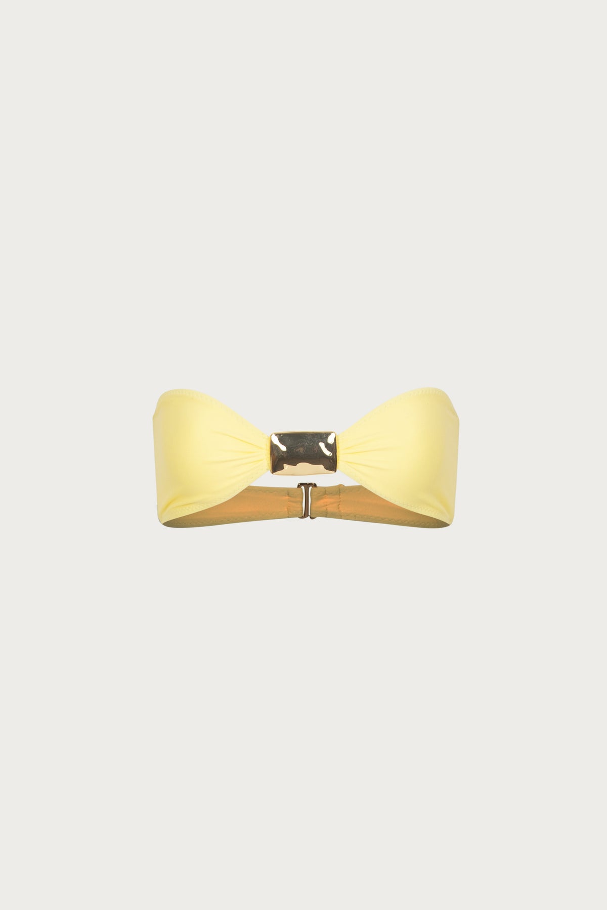 A minimal silhouette with a sculptural twist. The Hammer Bandeau features a sleek, strapless shape accented by our custom gold-tone hammered metal hardware. Pairs perfectly with any of our matching hammer bottoms for a polished, versatile look.