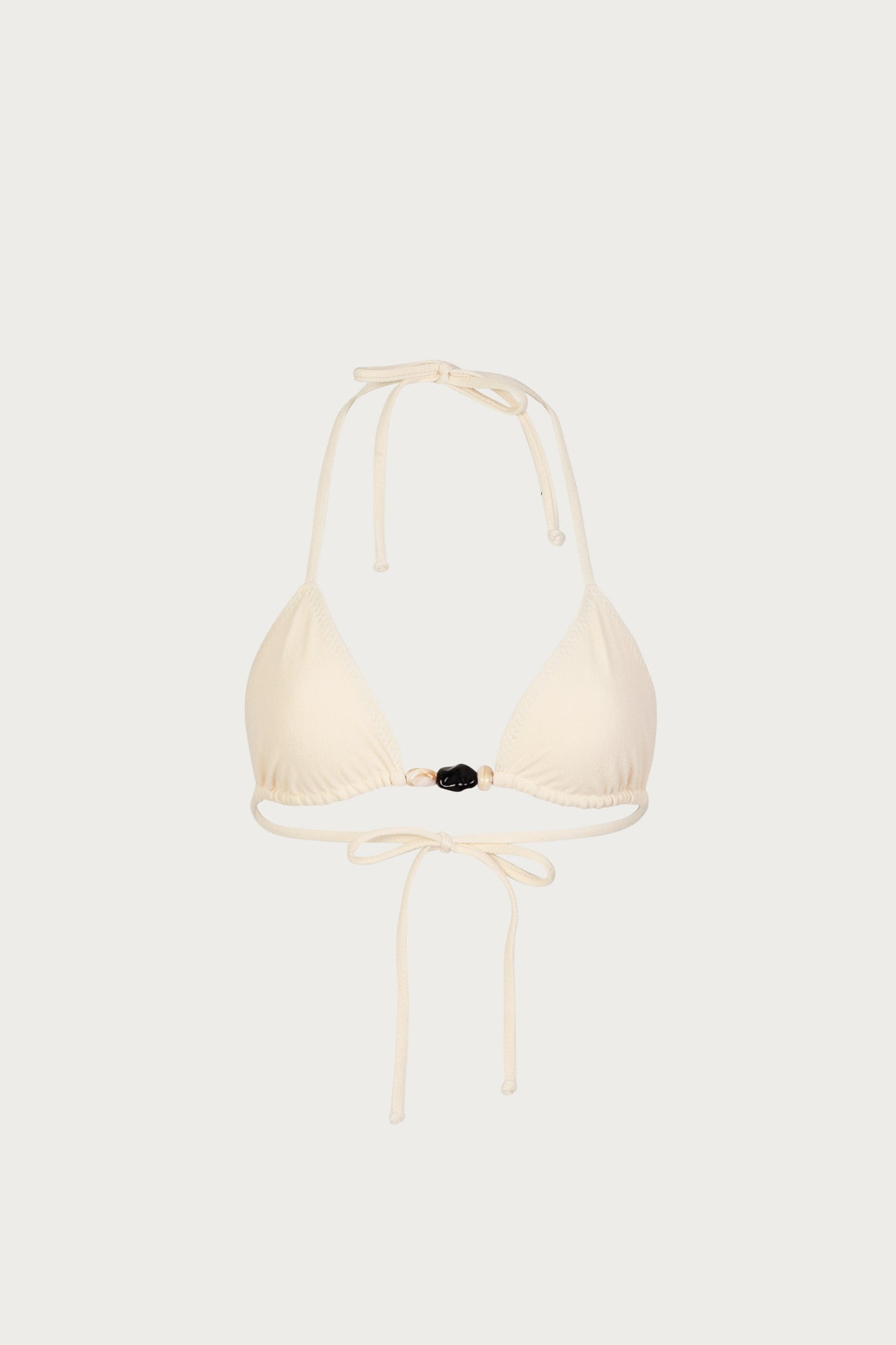 Stone Beaded Triangle Top accented with custom statement beads of marbled resin in neutral tones.