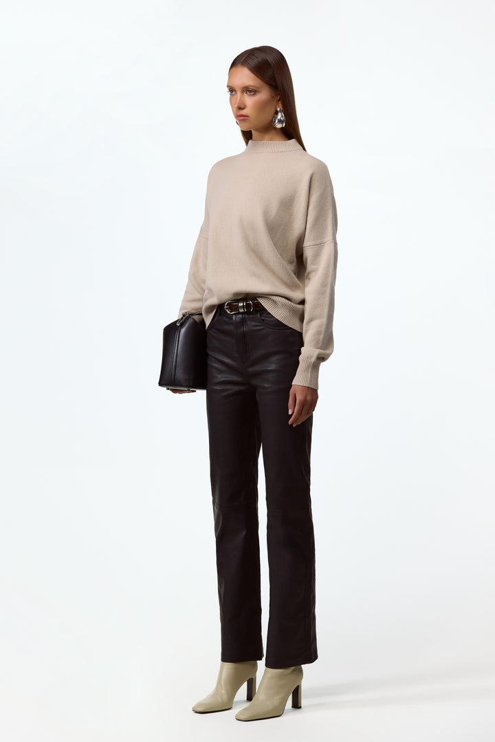 Crafted from a merino wool blend, this sweater is designed with a flat knit finish for a smooth, lightweight feel. A classic crew neckline and drop shoulders create a relaxed shape, while the sleeves and hem have a subtle billow effect that’s balanced by a fitted cuff. Hits at the hips for an easy, everyday fit.