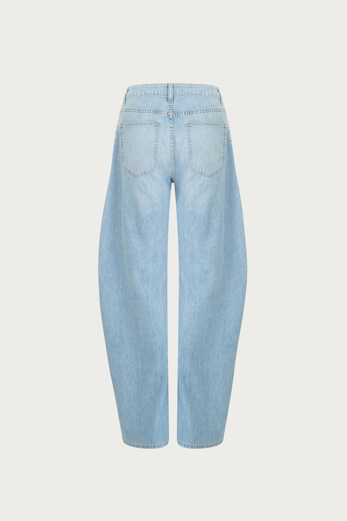 The Barrel Leg Jean is a high-rise style with a curved, sculptural leg that tapers at the ankle for a modern silhouette. Designed to sit high on the waist and create shape through the hip, it balances structure with ease. Every detail has been considered—from our signature tortoise shell button to the label-free back and outer caballo seam.