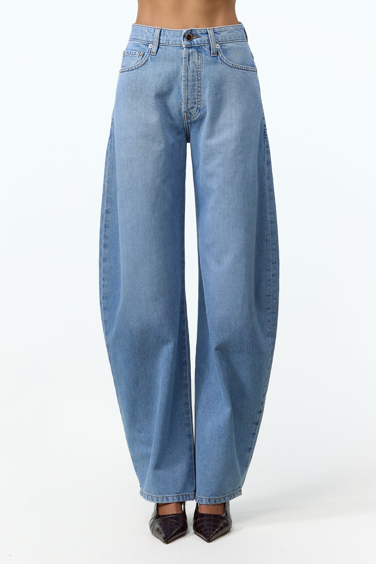 High-rise, barrel-leg silhouette