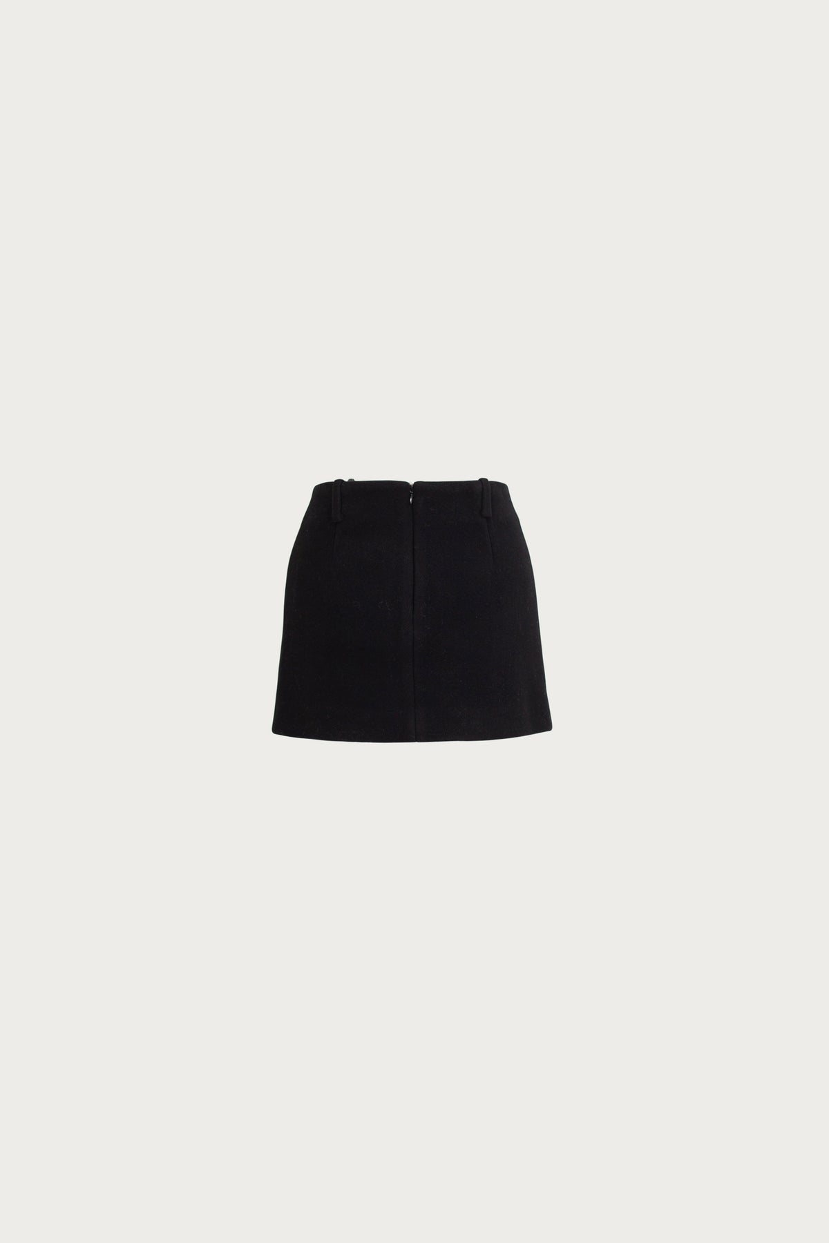 Cut from 100% wool and fully lined, this mini is tailored to sit at the natural waist with a mid-to-high rise fit. Designed with princess seam darts for shape, functional belt loops, and an invisible back zipper, it offers a flattering, structured silhouette that feels polished yet versatile.